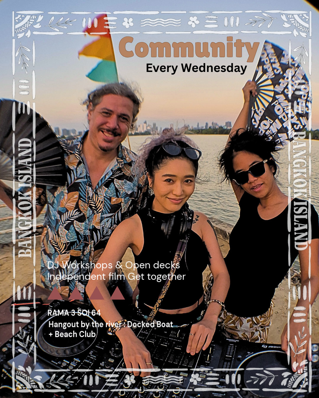 ถ้าคุณกำลังหา กิจกรรมทำในกรุงเทพฯ คืนวันพุธ งาน เข้างานฟรีในกรุงเทพฯ ที่นั่งชิลริมแม่น้ำ หรือ เวิร์กช็อปดีเจสำหรับมือใหม่ ที่บรรยากาศผ่อนคลายและจริงใจ Community Bangkok คือคำตอบประจำสัปดาห์ของคุณ พก USB ของคุณมา นั่งดื่มสบาย ๆ ทำความรู้จักเพื่อนใหม่ แล้วมาดูความคิดสร้างสรรค์ค่อย ๆ เกิดขึ้นตรงหน้าแบบเรียลไทม์ — ทุกวันพุธบนเรือริมแม่น้ำ